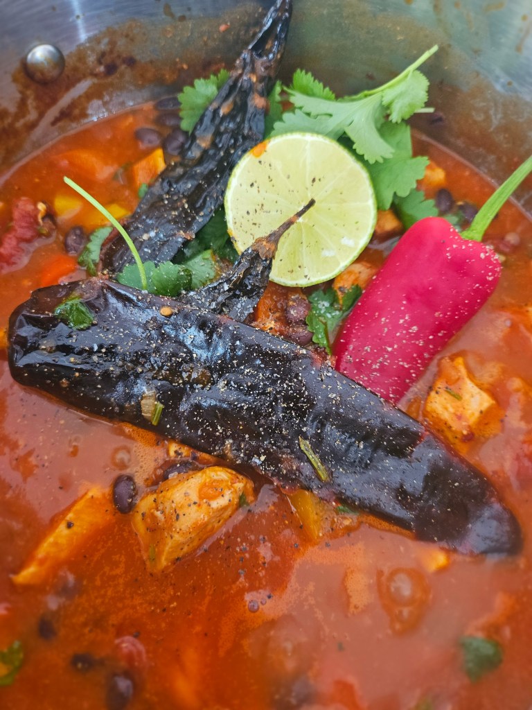 Just before serving – sprinkle shredded Basil and the juice of the Lemon and salt and pepper.